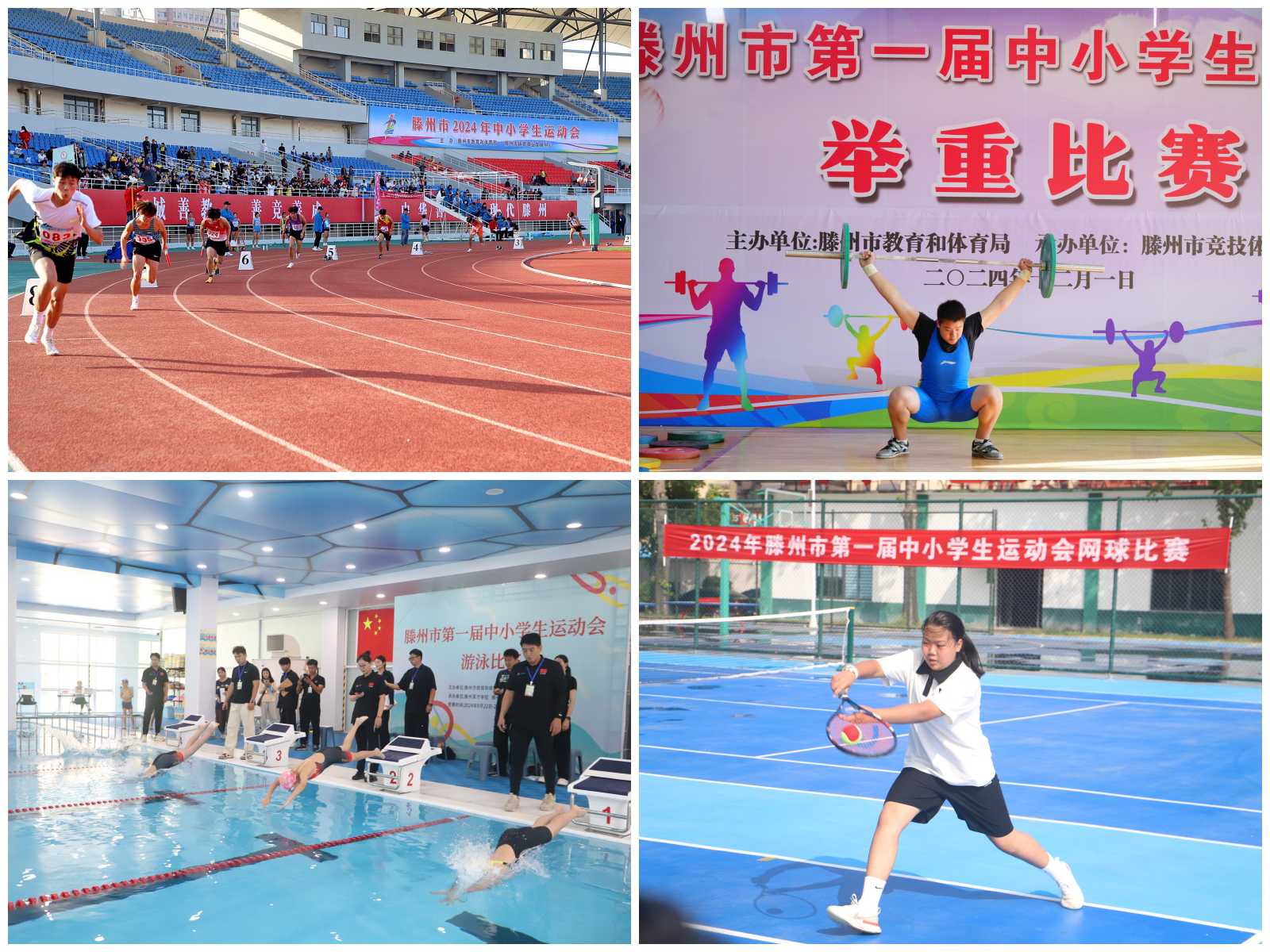 大力实施“十百千万”体育赛事活动工程,形成了“校校有项目、月月有赛事、生生有特长”的良好局面。组织举办的2024年全市中小会规模空前、精彩非凡。一是比赛项目全,涵盖篮球、足球、排球、乒乓球、羽毛球、网球、游泳、田径、啦啦操、象棋(国际象棋)、跆拳道、武术套路、武术散打、摔跤、柔道、举重和拳击等17个竞技体育项目;二是参赛学生多,全年参赛运动员突破1万人;三是时间跨度大,从3月份举办篮球比赛开始,赛事活动持续全年;四是社会影响广,各比赛项目通过抖音、视频号等媒体广泛传播,得到了社会各界的高度关注和充分肯定。省体育局党组成员、副局长张柄臣莅临开幕式现场并宣布运动会开幕,现场观众逾万人,网上直播观看人数10万余人,将滕州市青少年体育工作推向新的历史高度。同时,2024年全市各级各类学校举办校级体育赛事活动1400余场次,累计参与学生30余万人次。我市学校体育工作被新华每日电讯以《滕州市“以体育人”催生“活力校园”》为题进行了深入报道。